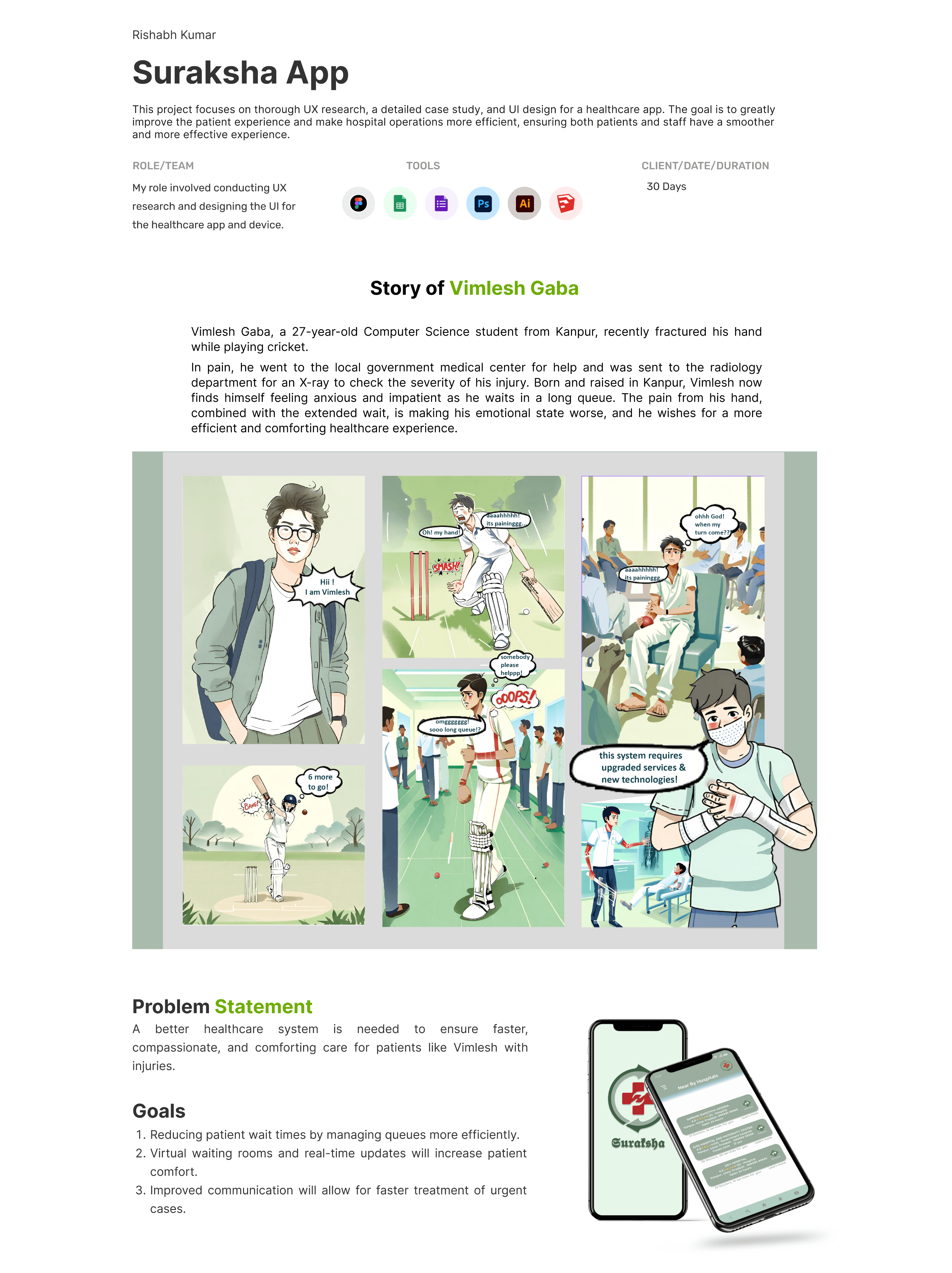 The Suraksha App project enhances patient experience and hospital efficiency with thoughtful UX research, a case study, and intuitive UI design.