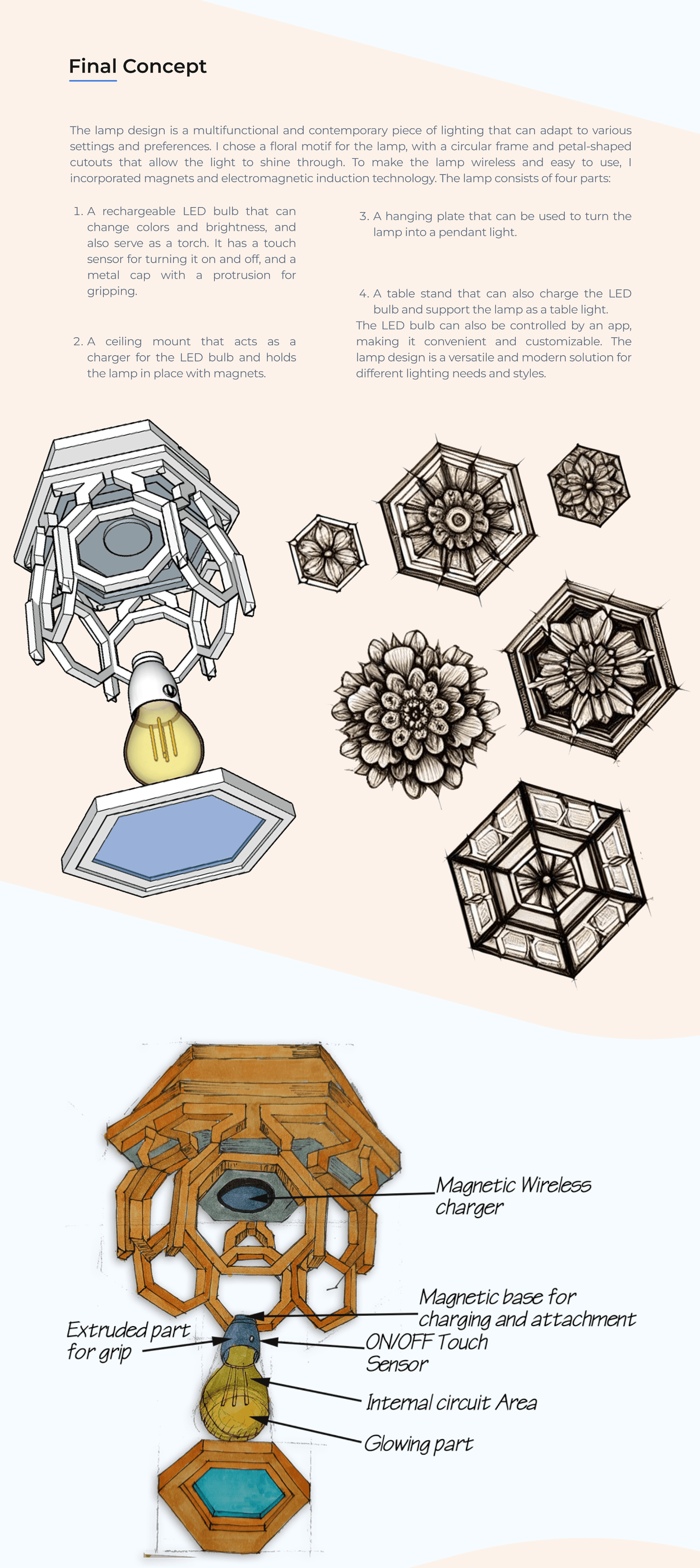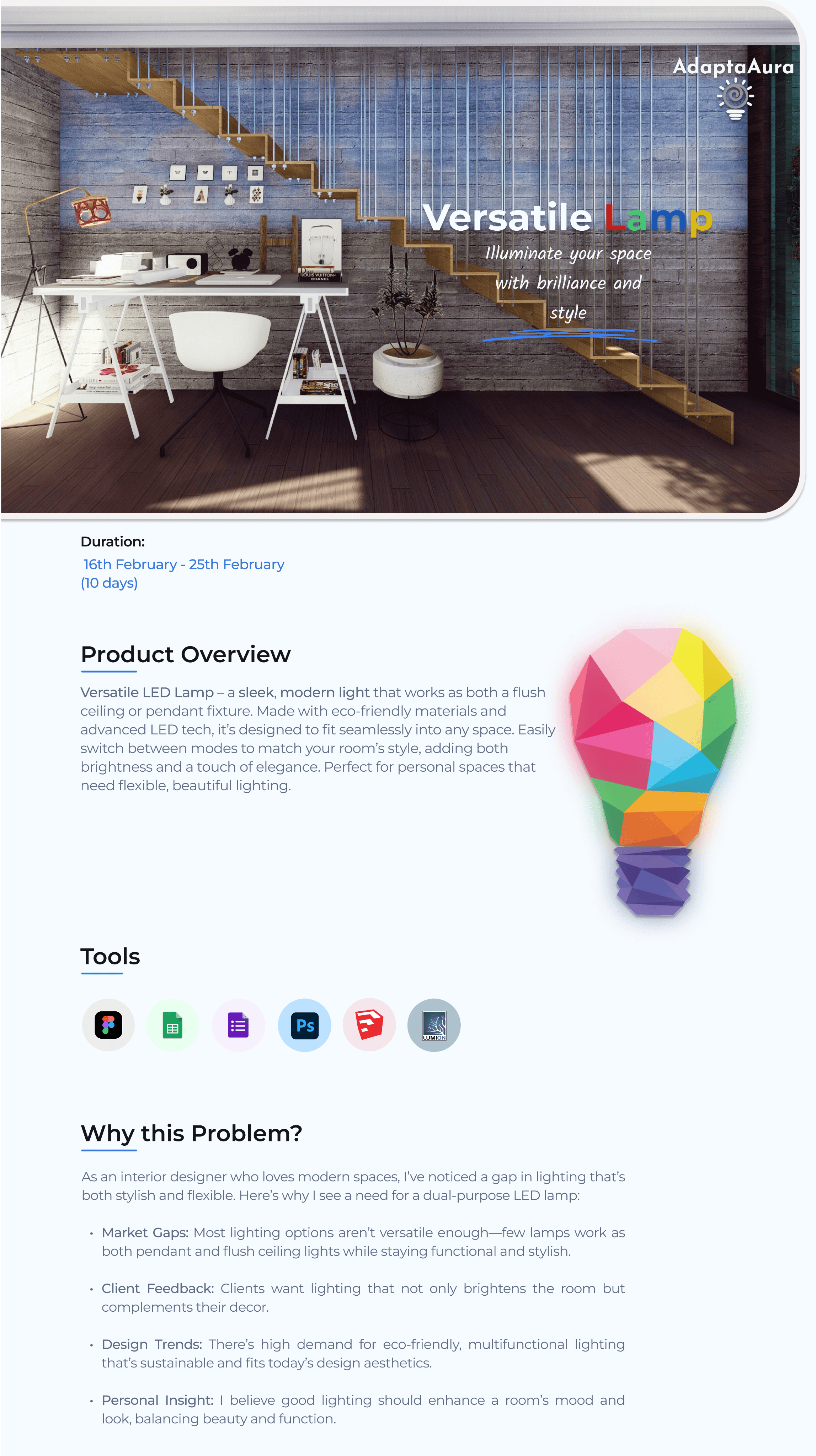 The Versatile Lamp is a modern, adaptable lighting design with wireless features, offering customizable settings for ceiling, pendant, and table use.